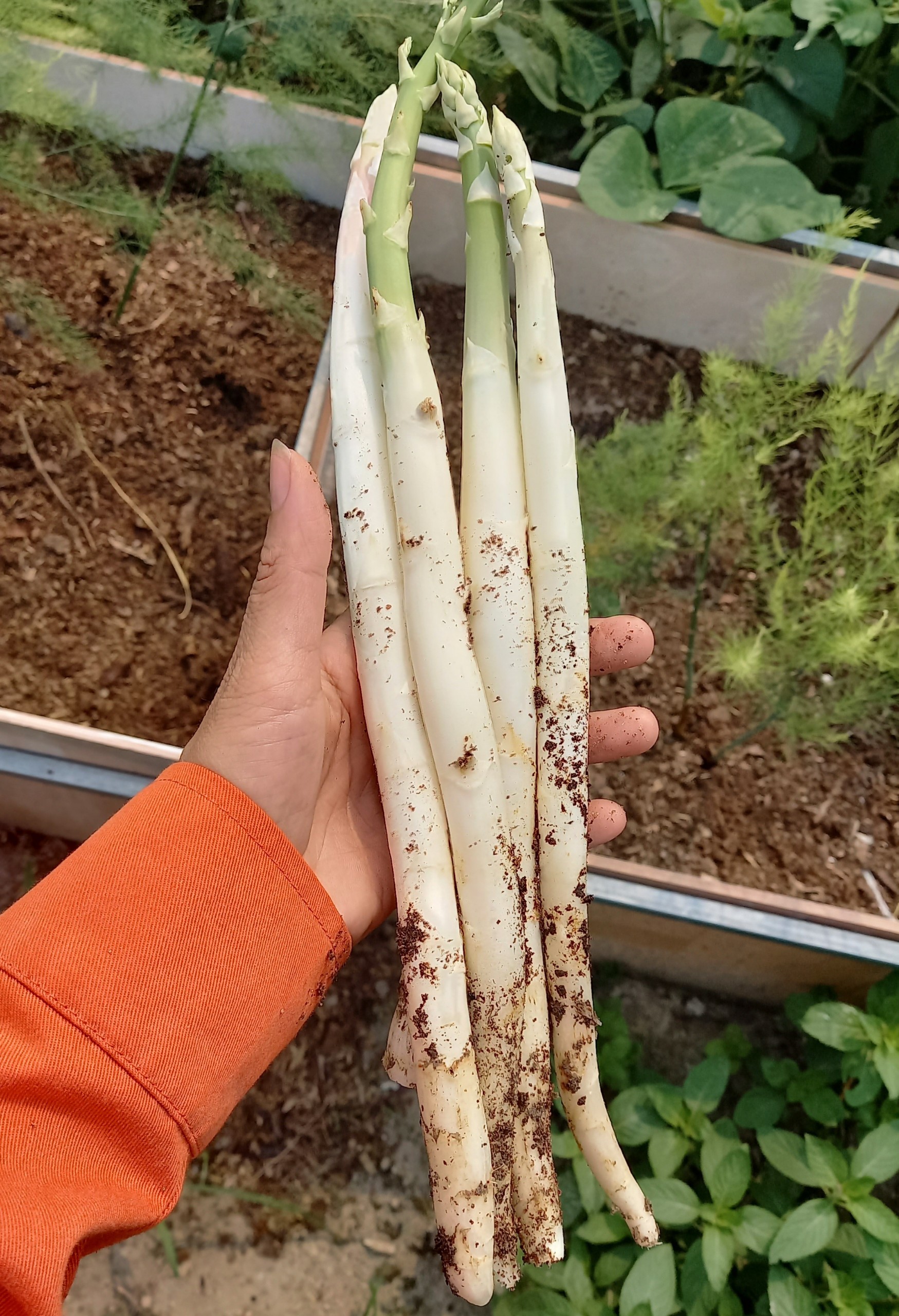Ngoài việc chăn nuôi, anh cũng đang chăm sóc một khu vườn đa dạng sinh học gồm măng tây, na, hoa huệ, rau ngắn ngày, gia vị và dược liệu. Với nguồn phân bón từ mô hình nuôi ruồi, anh gần như chủ động hoàn toàn dinh dưỡng cây trồng, tiết kiệm rất nhiều chi phí trên nông trại. Đặc biệt với kỹ thuật trồng măng tây theo kiểu "chẳng giống ai", anh Dần cung cấp ra thị trường sản phẩm Măng tây trắng định hướng hữu cơ, an toàn cho sức khỏe người tiêu dùng.