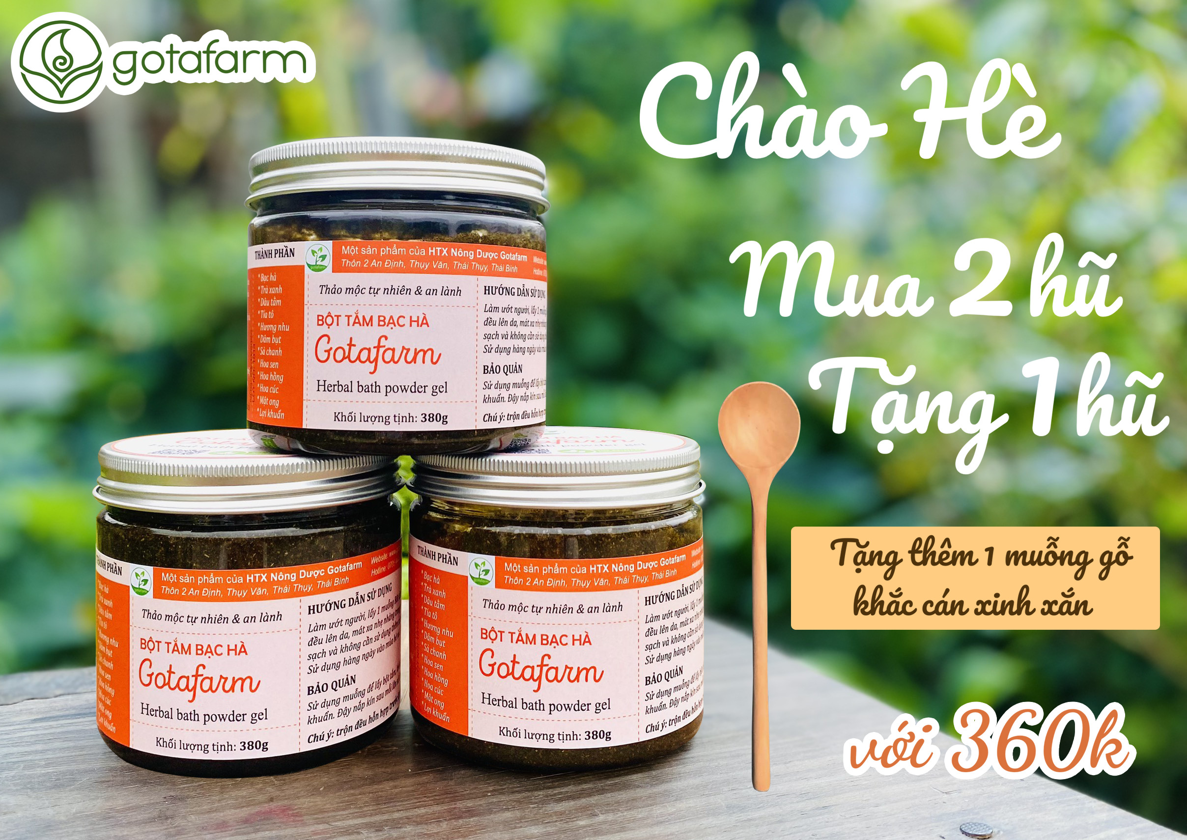 Xin chào mùa hè rực rỡ! Gotafarm gửi tới chị em một chương trình HOTDEAL SIÊU MÁT CHÀO HÈ: "Mua 2 - Tặng 1 - Kỉ niệm 1" khi mua sản phẩm BỘT TẮM BẠC HÀ