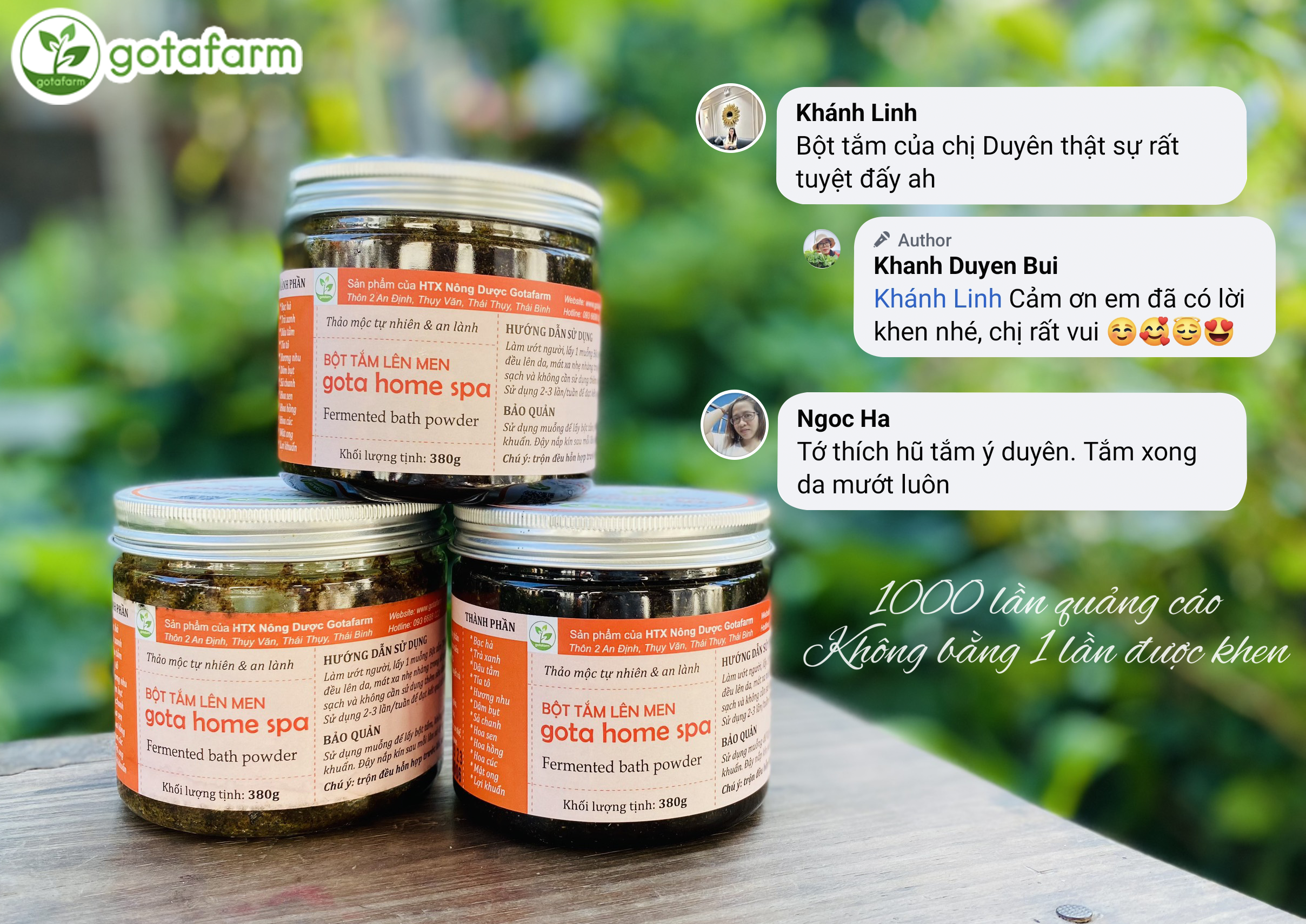 BỘT TẮM BẠC HÀ Gotafarm được chế biến từ các thảo dược được canh tác tự nhiên như: Bạc Hà, Trà Xanh, Cúc Chi, Hương Nhu, Tía Tô, Sài Đất, Ngải Cứu, Dâm Bụt, Sả Chanh, Cám Gạo… theo phương pháp lên men, bảo quản hoàn toàn tự nhiên bằng Mật Ong.