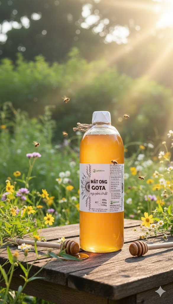 Mật ong nguyên chất Gota khai thác từ ong nuôi tự nhiên, được kiểm nghiệm nghiêm ngặt theo Tiêu chuẩn Quốc gia TCVN 12605:2011 về mật ong, đảm bảo mật ong tự nhiên và chất lượng cao, phù hợp pha chế đồ uống hàng ngày.