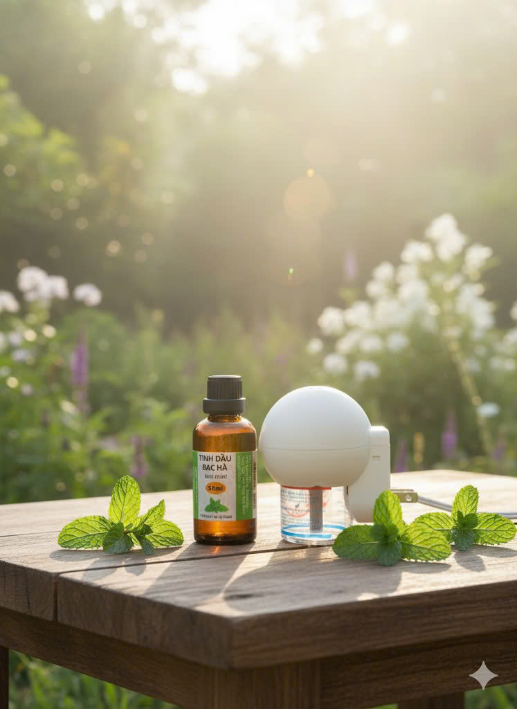 * Sử dụng tinh dầu để lau khử khuẩn: Pha 5 giọt tinh dầu Bạc hà vào nước lau sàn nhà, nước lau bàn ghế, lau tủ lạnh. Vừa làm sạch bề mặt và khử khuẩn tối đa, vừa tạo hương thơm mát dễ chịu.