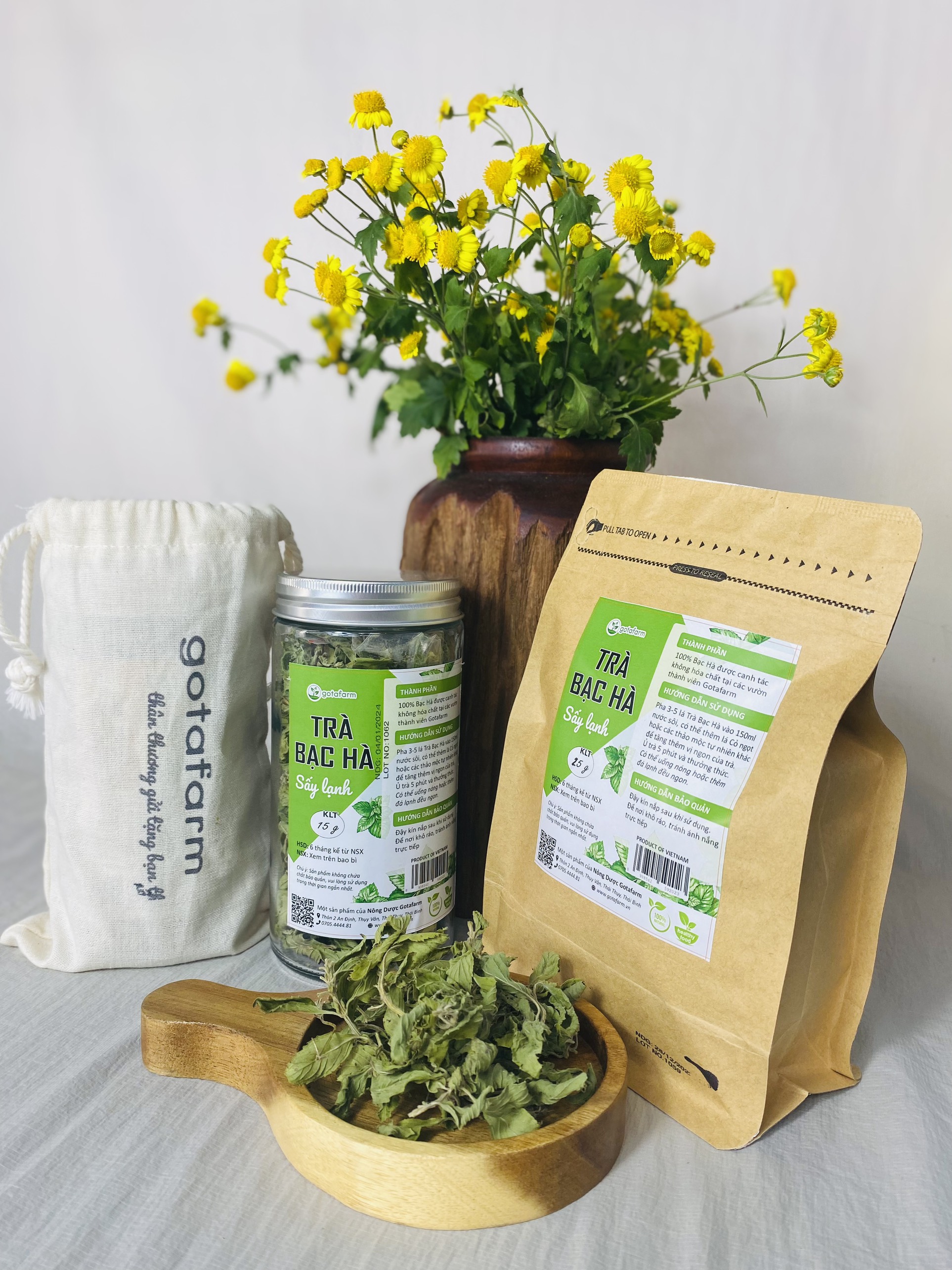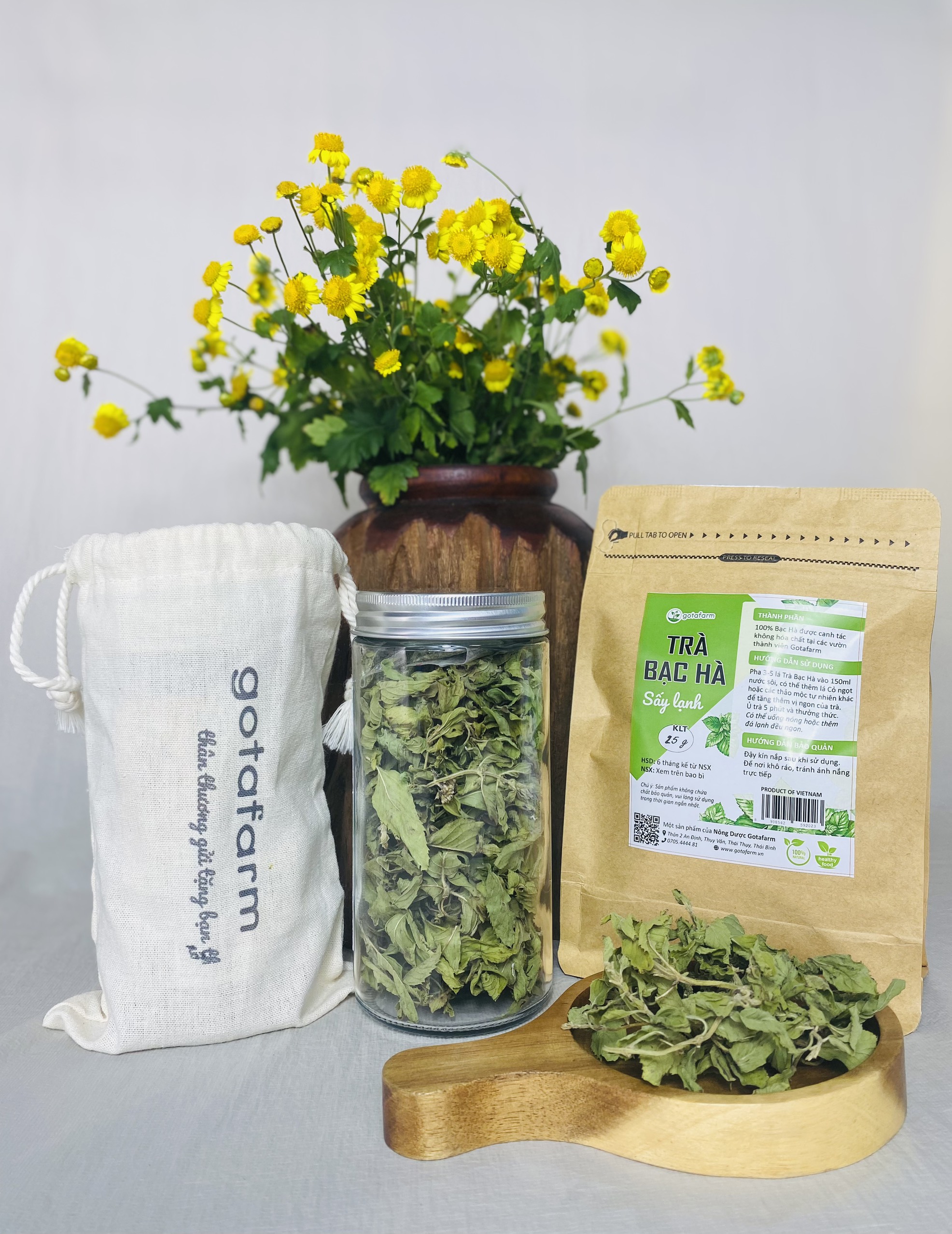 * Bạc hà được canh tác tại các vườn thành viên Gotafarm theo định hướng tự nhiên, không sử dụng hóa chất và phân bón hóa học, không dùng chất kích thích tăng trưởng.